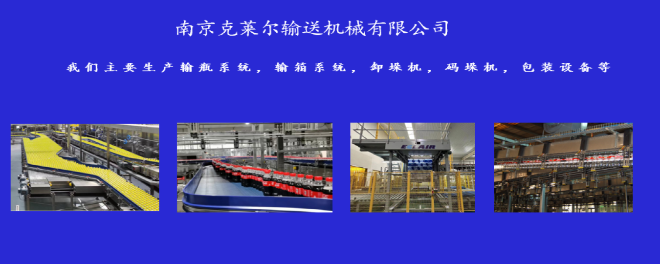 南京克萊爾輸送機械有限公司成立于2007年,是一家中法合資企業,主要生產空氣輸送系統,輸瓶系統,輸箱系統,碼垛機,包裝機等設備。